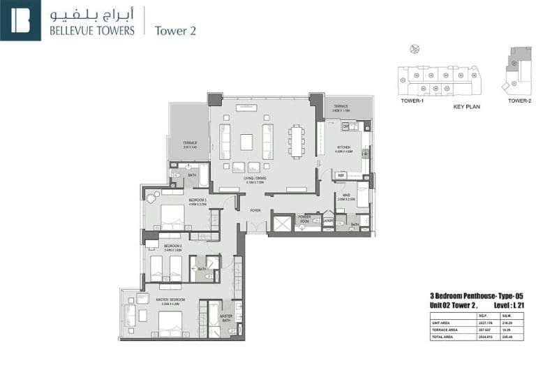 Bellevue Tower 2 – 3 Bedroom Penthouse Floor Plan Type 05