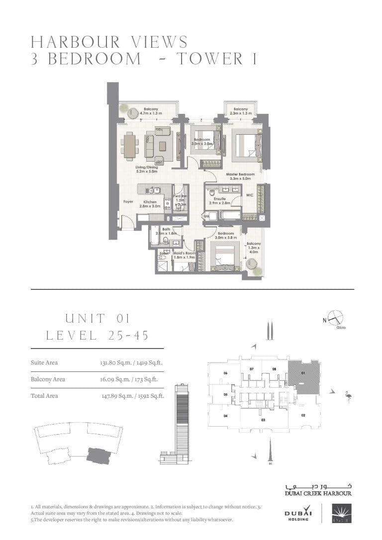 Harbour Views Tower 1 – 3 Bedroom Apartment Unit 01 Floor Plans