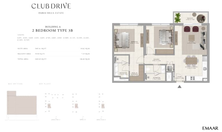 Club Drive Building A – 2 Bedroom Apartment Type 3B Floor Plan