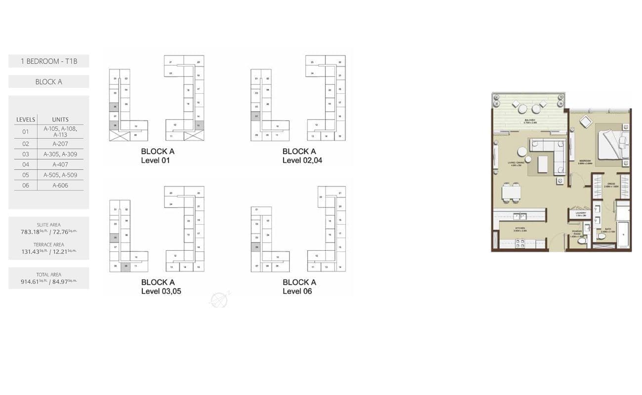 Mulberry 1 Bedroom Apartment Type T1B Block A Floor Plans