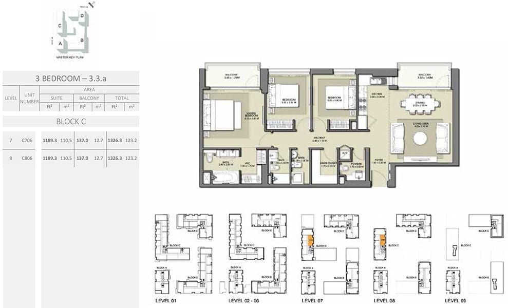 Park Point 3 Bedroom Apartment 3.3A Block C Floor Plans