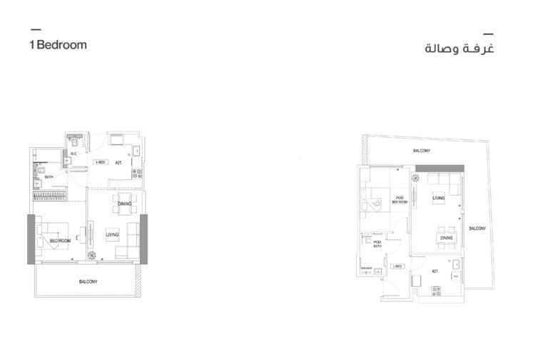 Binghatti Corner 1 Bedroom Apartment Floor Plans 1