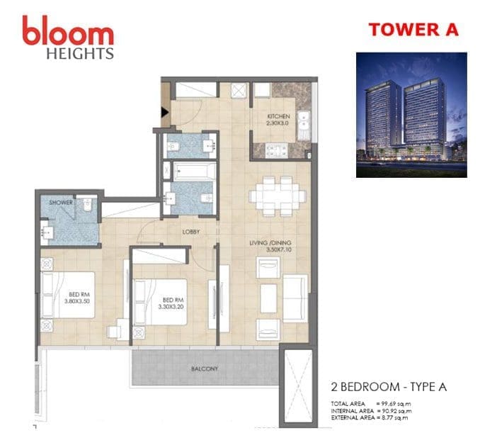 Bloom Heights Tower A 2 Bedroom Apartment Type A Floor Plans
