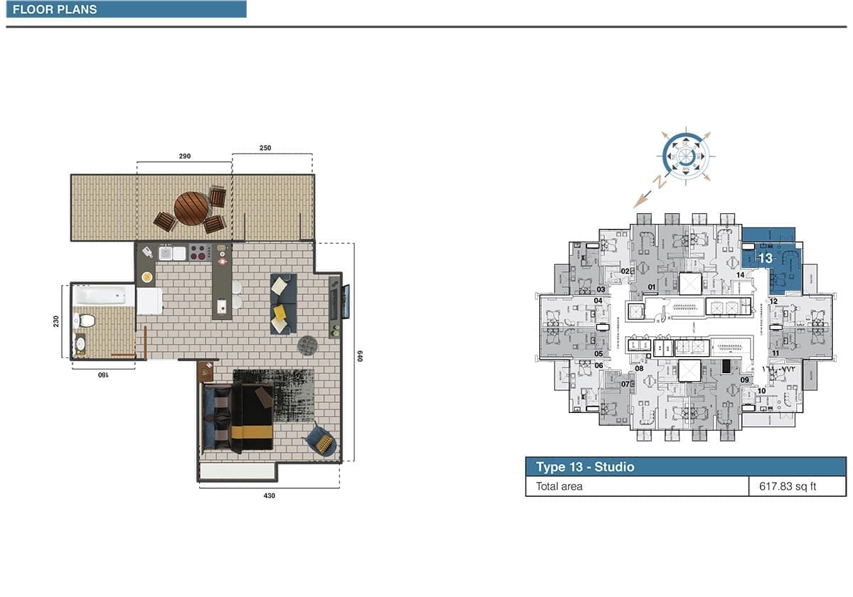 The Square Tower Studio Apartment Type 13 Floor Plans