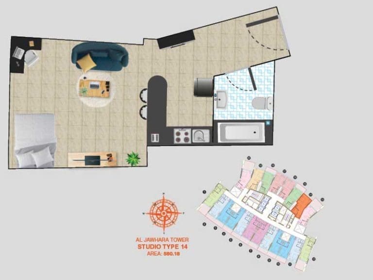 Al Jawhara Tower Studio Apartment Type 14 Floor Plans