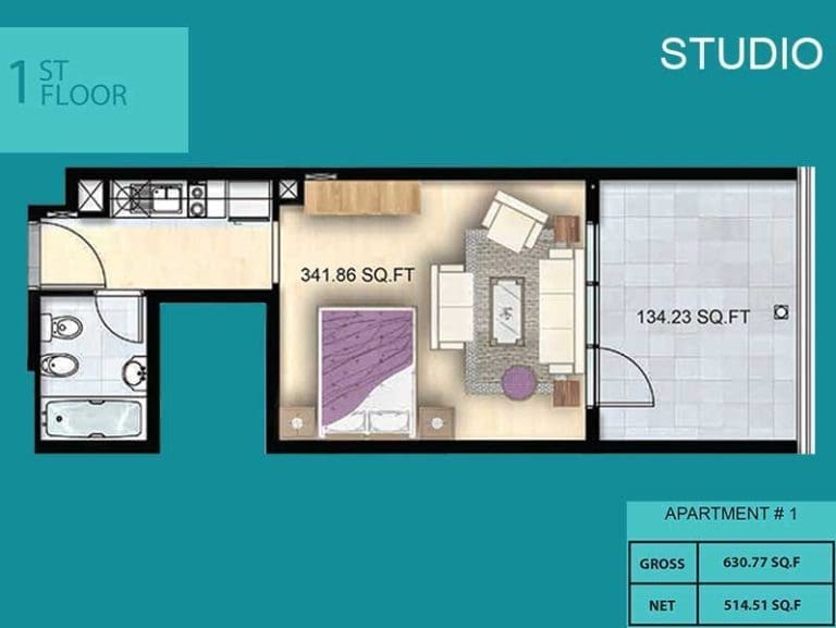Al Manara Tower Studio Apartment 01 Floor Plans