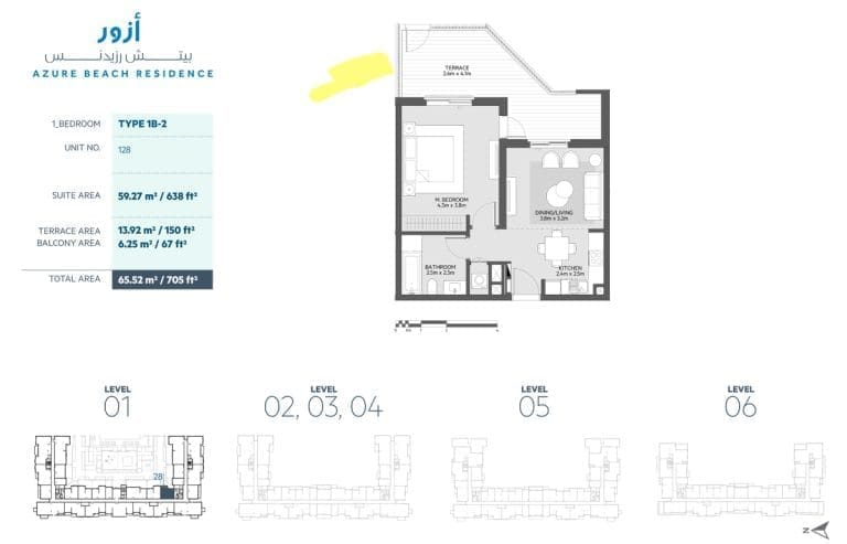 Azure Beach Residence 1 Bedroom Apartment Type 1B-2 Floor Plans
