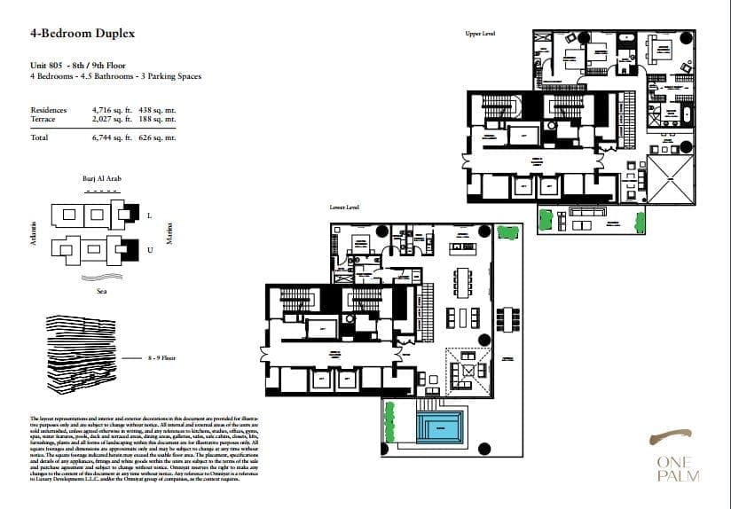 One at Palm Jumeirah 4 Bedroom Duplex Unit 805 Floor Plans