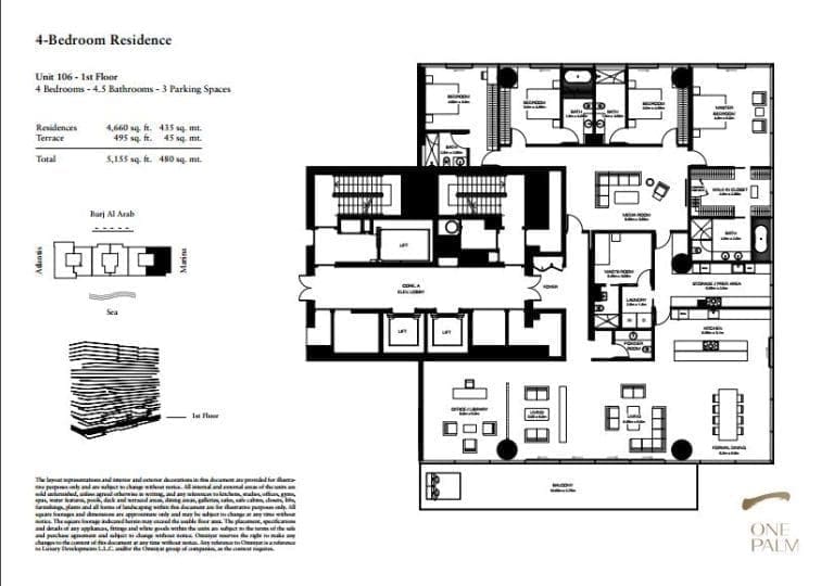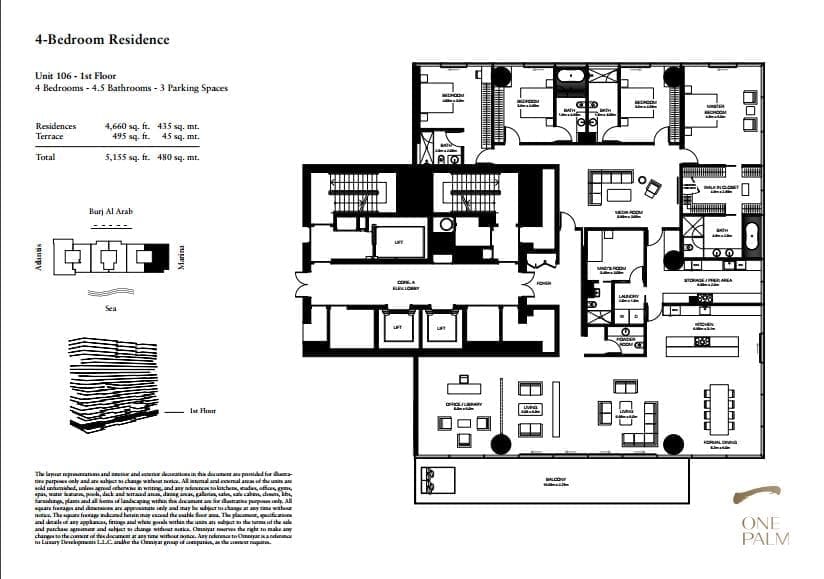 One at Palm Jumeirah 4 Bedroom Residence Unit 106 Floor Plans