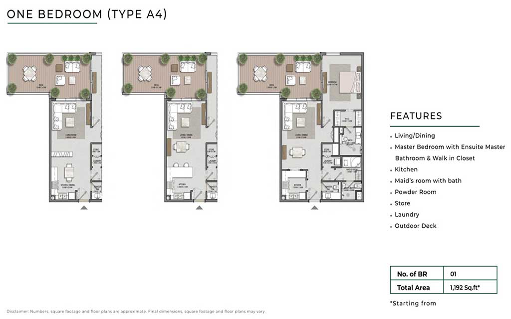 Доступны планировки великолепных апартаментов Manzel & Majlis с 1, 2 и 3 спальнями, а также дуплексных таунхаусов с 3 спальнями. Живите в великолепии жизни, которая фантастична и удивительна во всех отношениях и по своему убранству.