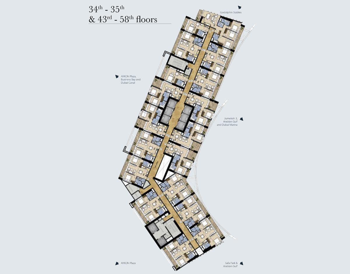 Планы 34-35 и 43-58 этажей в Aykon City Tower