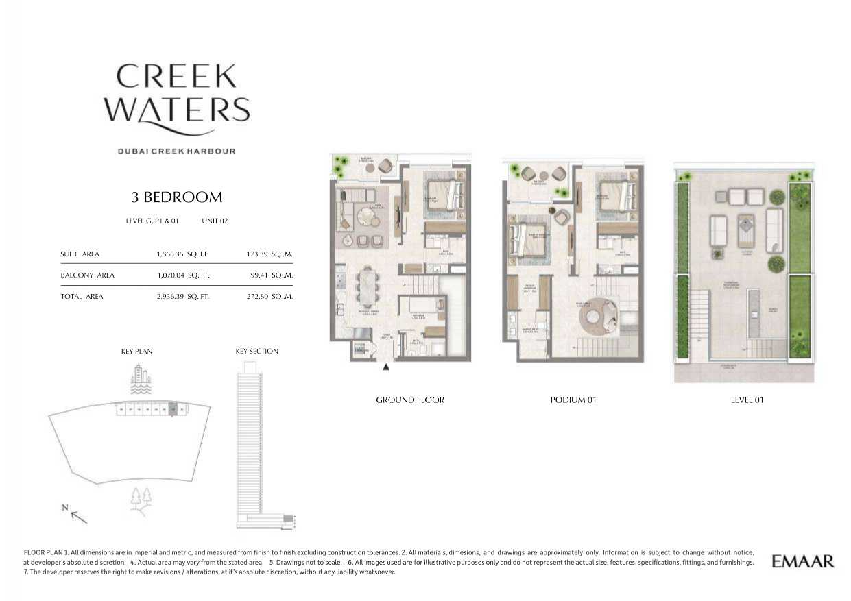 Планировка апартаментов с 3 спальнями в Emaar Creek Waters. Номер 02