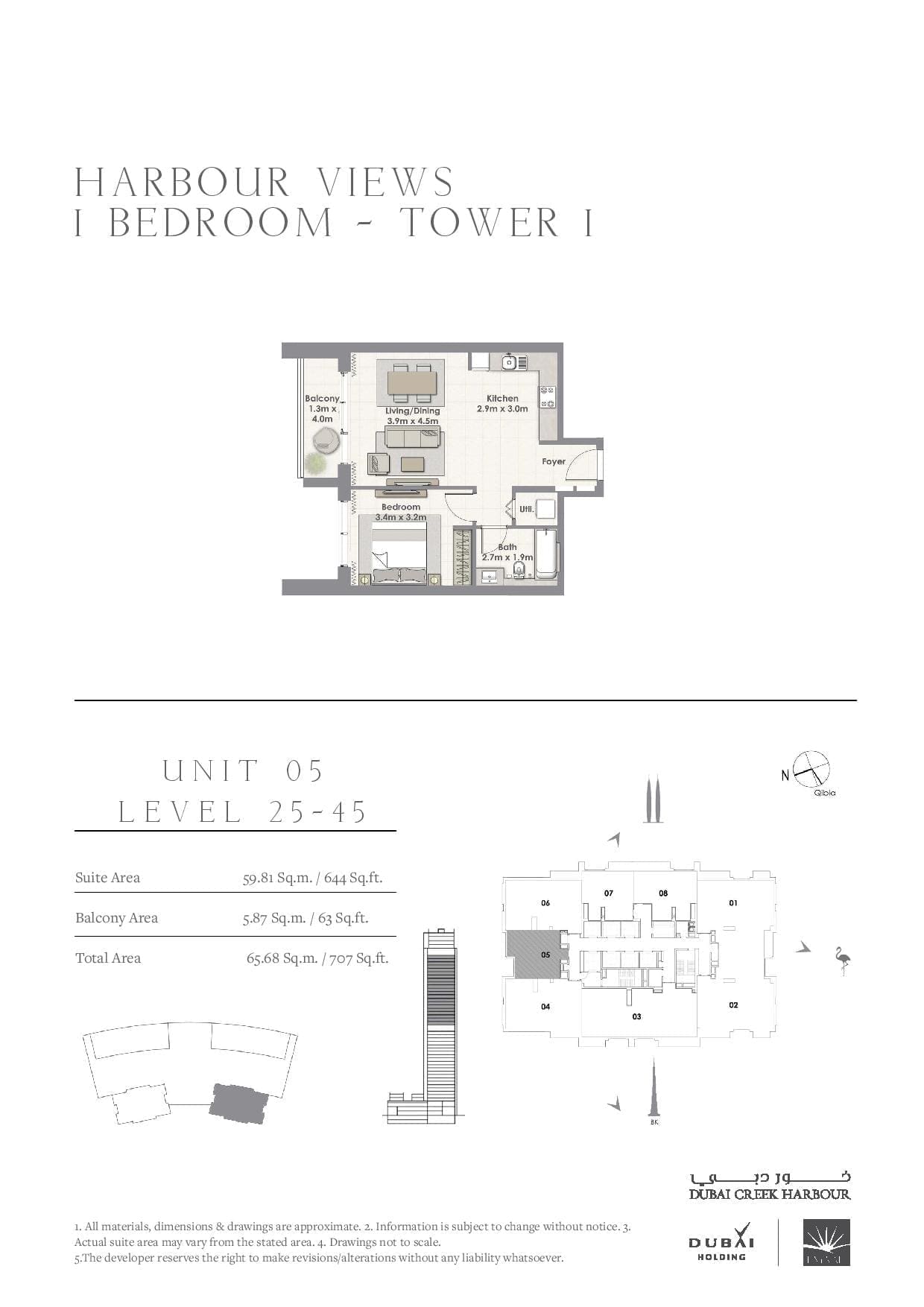 Планировка апартаментов с 1 спальней в Harbour Views Tower 1. Номер 05