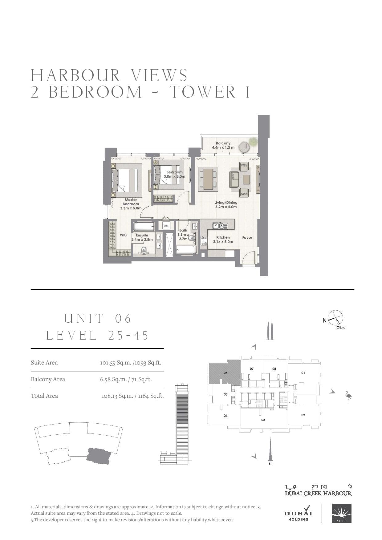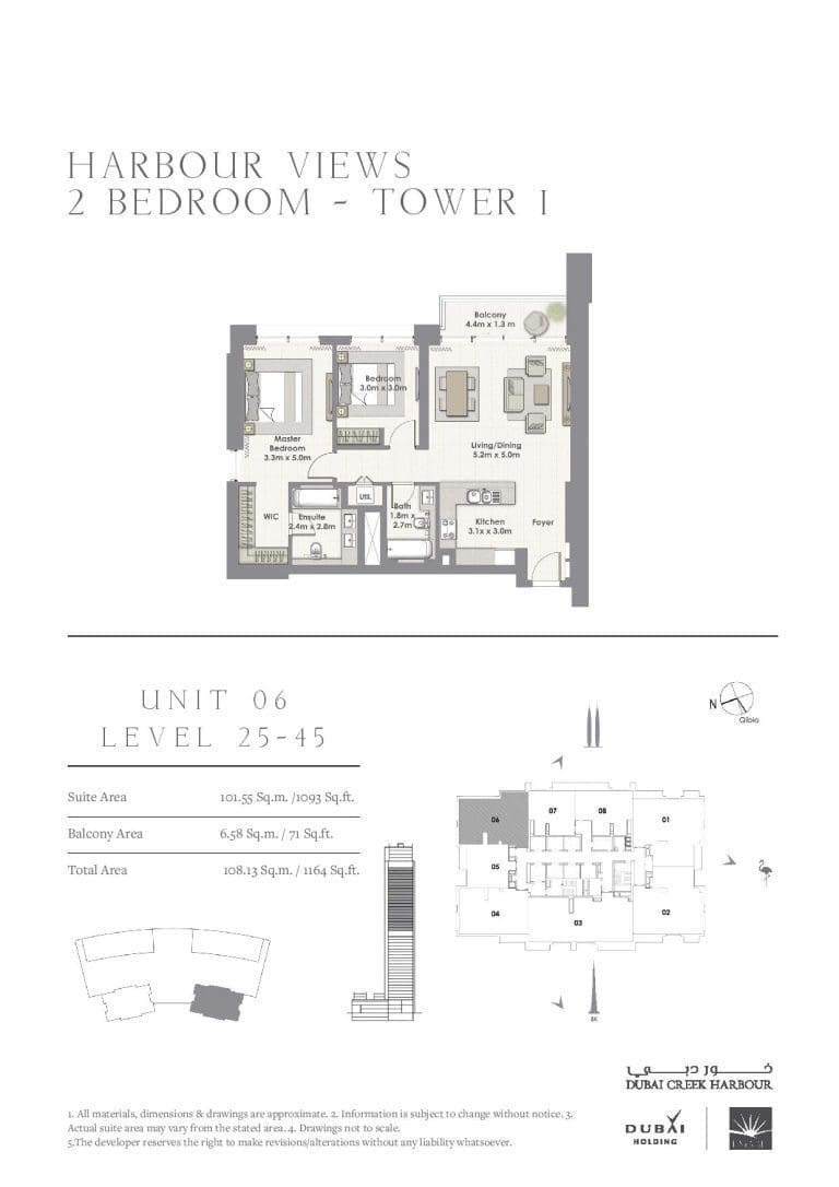 Планировка апартаментов с 2 спальнями в Harbour Views Tower 1. Номер 06