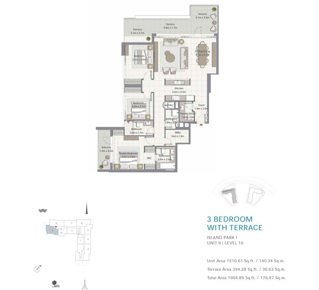 Планировка апартаментов с 3 спальнями в Island Park. Номер 09
