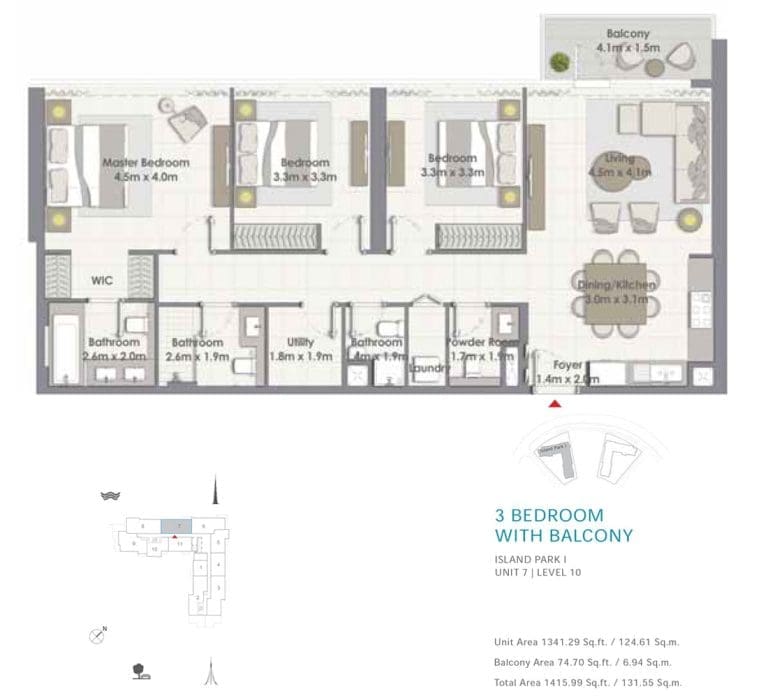 Планировка апартаментов с 3 спальнями в Island Park. Номер 10