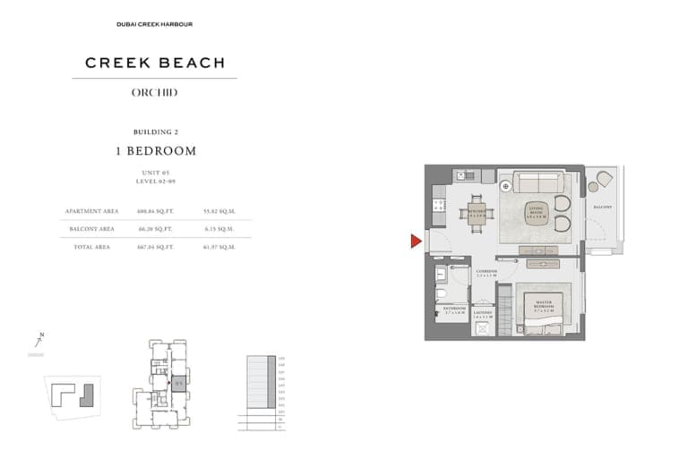 Планировка апартаментов с 1 спальней в Orchid в Creek Beach. Здание 2. Номер 05