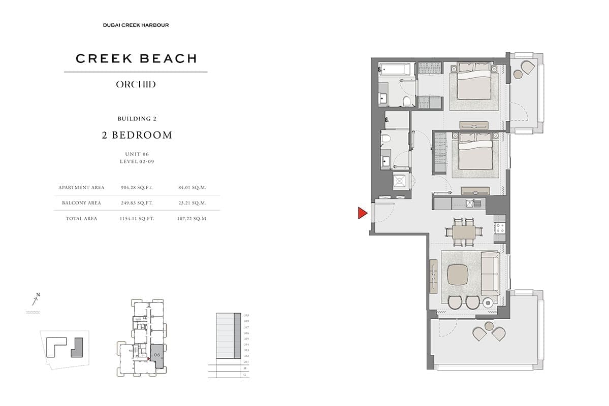 Планировка апартаментов с 2 спальнями в Orchid в Creek Beach. Здание 2. Номер 06