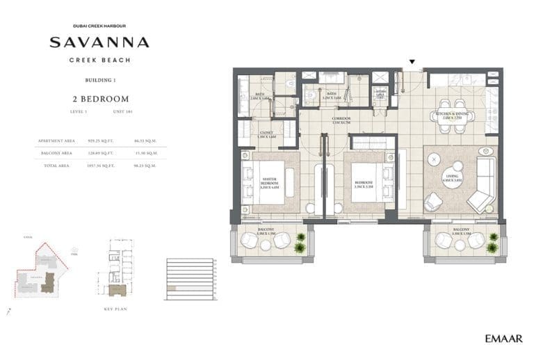 Планировка апартаментов с 2 спальнями в Savanna Building 1. Номер 101