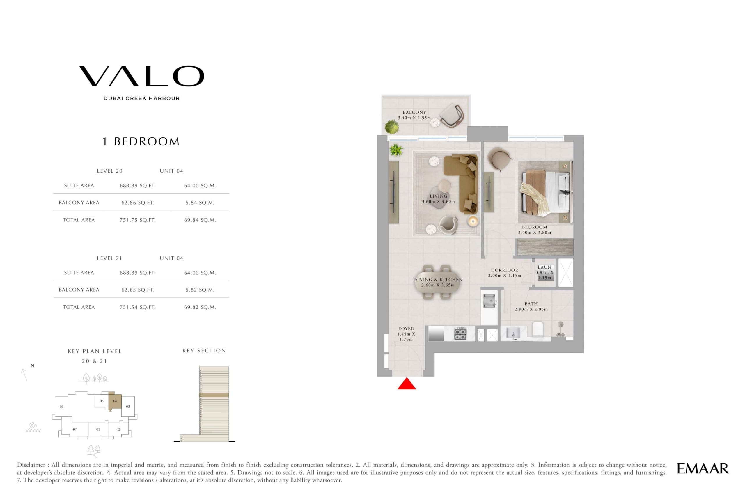 Планировка апартаментов с 1 спальней в Valo от Emaar. Номер 4