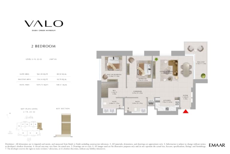 Планировка апартаментов с 2 спальнями в Valo от Emaar. Номер 3