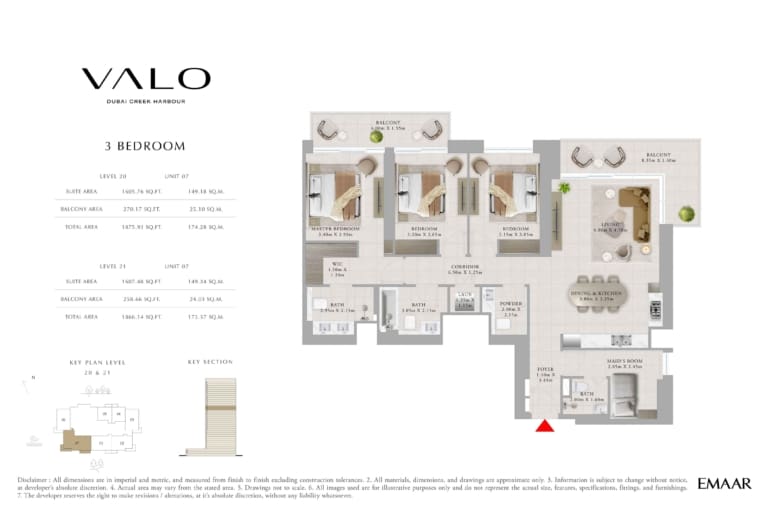 Планировка апартаментов с 3 спальнями в Valo от Emaar. Номер 7