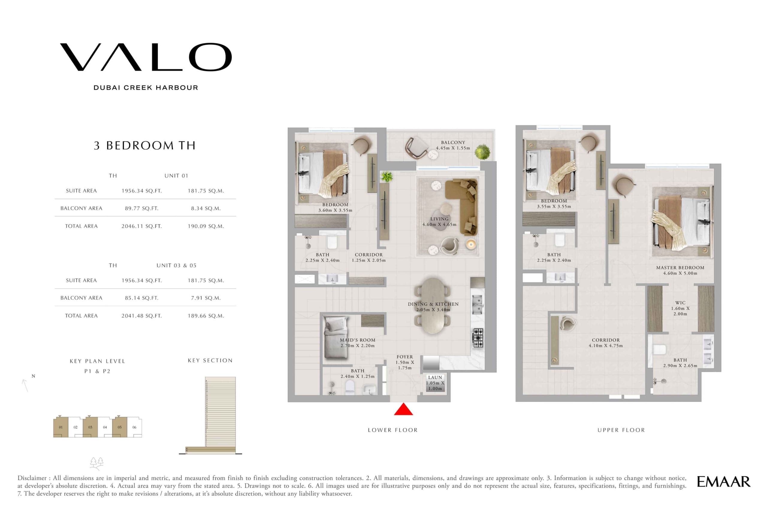Планировка таунхаусов с 3 спальнями в Valo от Emaar. Номер 1, 3 и 5